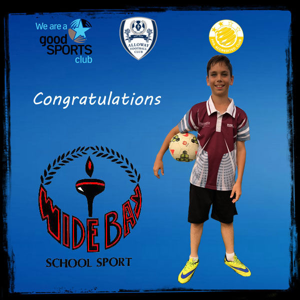 Congratulations to Alloway Football Club Inc. Under 12 player Ethan J. on his selection in the 10-12 Years Wide Bay School Sport Football team to play at the 10-12 Years QLD State Titles in Stanthorpe in June.